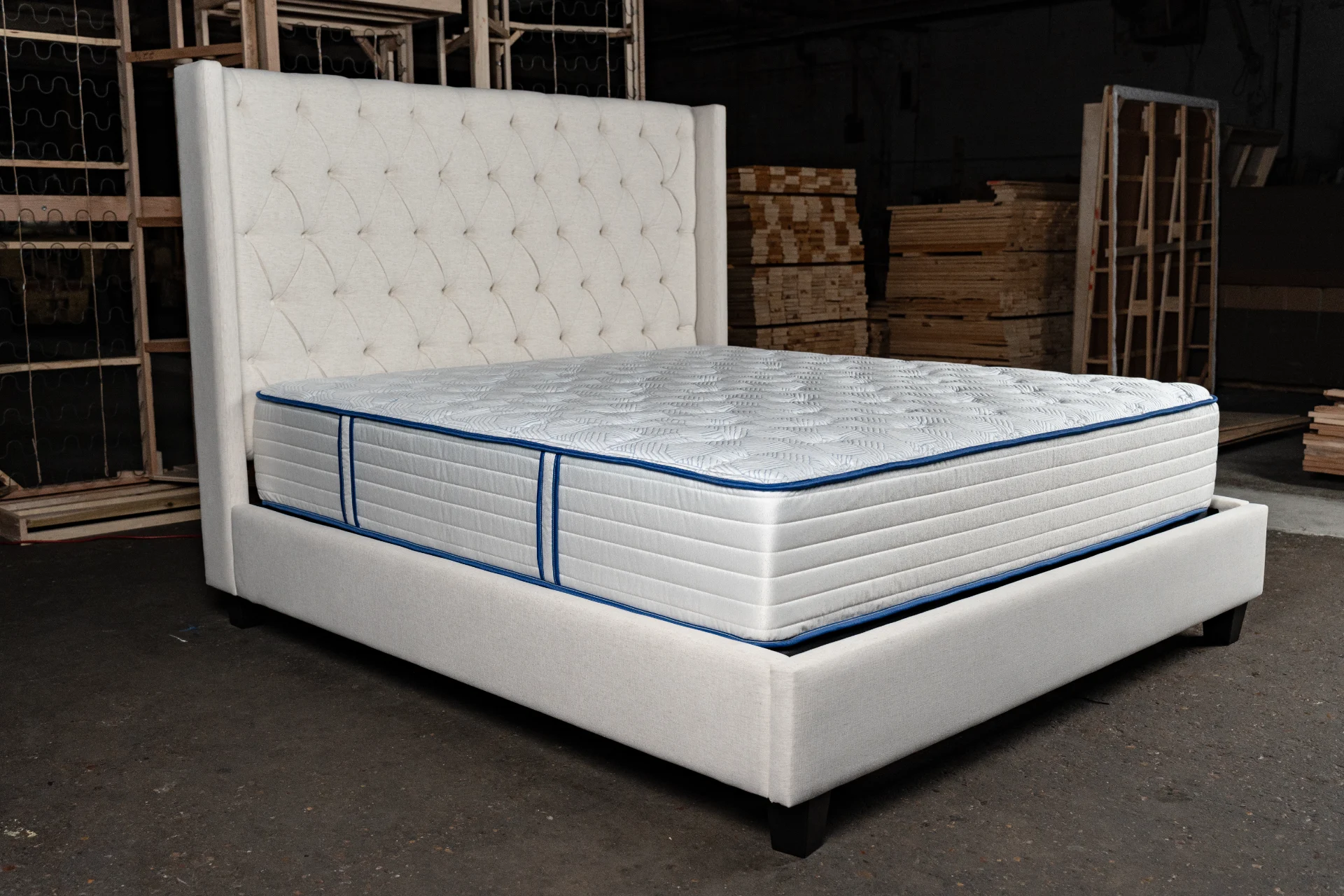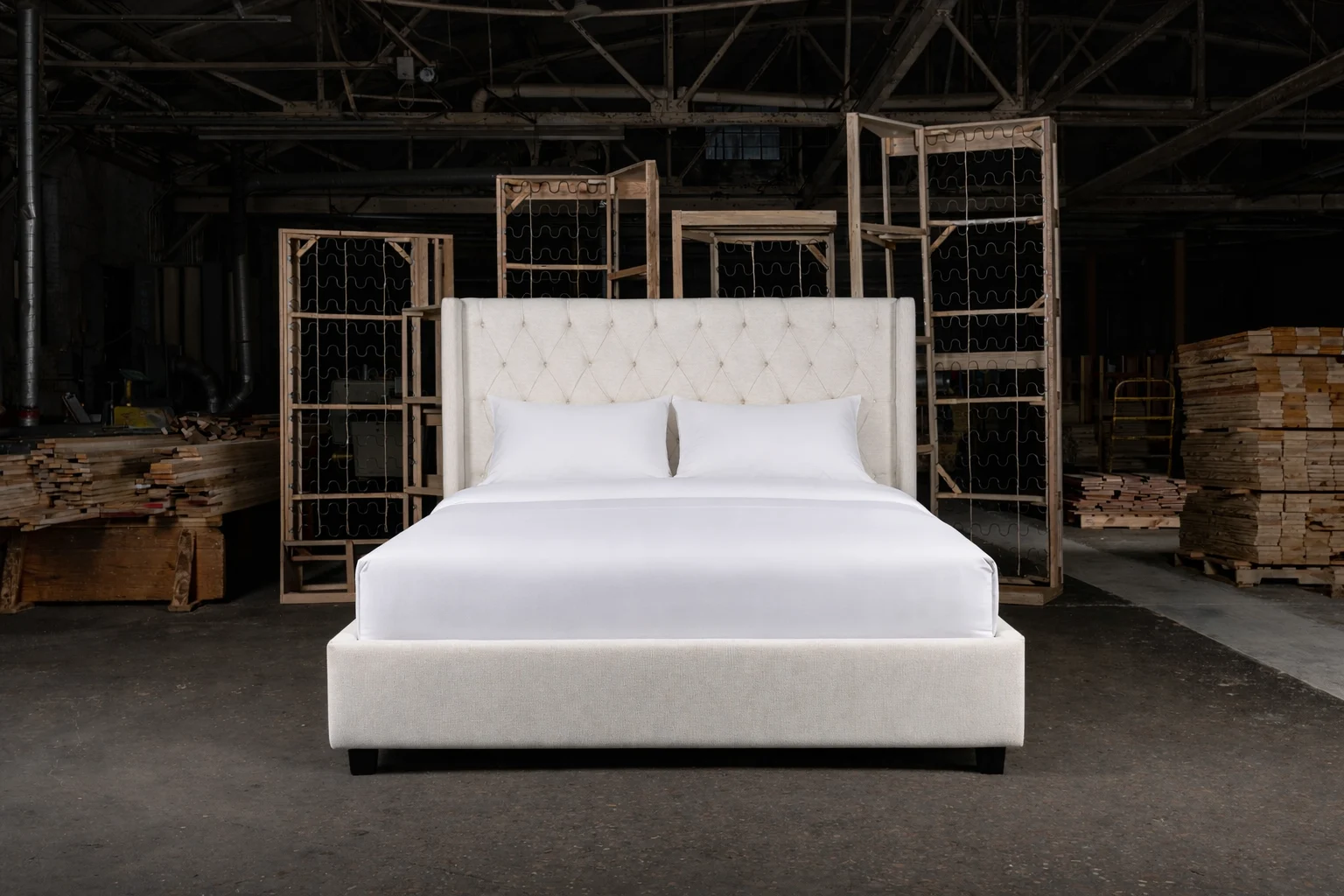 Enclosed side wings paired with stylish tufting create a welcoming vibe with a hint of luxury.